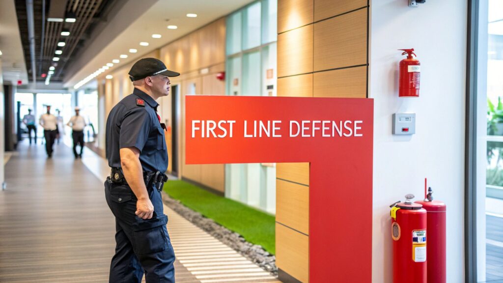 Once officers are on their way, the next task is to map out a strategic patrol plan. This isn’t just about having someone walk around; it’s about creating a methodical route designed to cover every critical part of your property. A key first step here is performing a solid risk assessment for small business to pinpoint potential fire hazards.